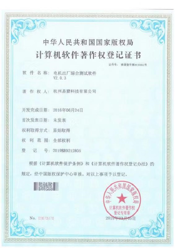電機(jī)出廠綜合測(cè)試軟件證書(shū)