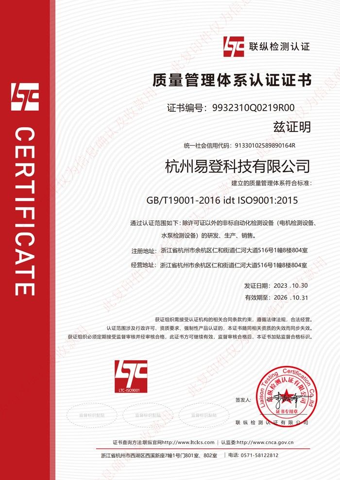 設(shè)備(電機(jī)檢測(cè)設(shè)備、水泵檢測(cè)設(shè)備)的研發(fā)、生產(chǎn)、銷售。ISO質(zhì)量體系認(rèn)證證書(shū)的成功申請(qǐng)標(biāo)志著我司在企業(yè)管理的